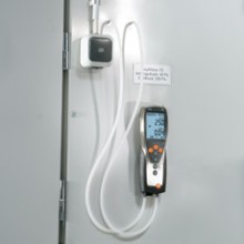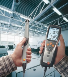 用于管道測(cè)量的流速傳感器都帶有伸縮桿,便于在大型空氣管道中進(jìn)行操作。如果需要,還可以使用測(cè)量流速的探頭來(lái)測(cè)量溫度和濕度。可以根據(jù)應(yīng)用需求選擇熱敏探頭、葉輪探頭或皮托管來(lái)測(cè)量管道中的流速。 測(cè)量室內(nèi)空氣質(zhì)量(二氧化碳)![]() 高濃度的二氧化碳會(huì)導(dǎo)致室內(nèi)空氣質(zhì)量變差,從而使人體感覺(jué)疲倦,無(wú)法集中精神,甚至生病。因此,為了保證良好的室內(nèi)空氣質(zhì)量,二氧化碳濃度一般不應(yīng)超過(guò)1 000 ppm。參考范圍為700到1500 ppm。 IAQ探頭(訂貨號(hào)0632 1535)尤為適合監(jiān)控室內(nèi)空氣質(zhì)量。此探頭可以同時(shí)記錄二氧化碳濃度、溫度和相對(duì)濕度。 在通風(fēng)管道內(nèi)使用皮托管進(jìn)行測(cè)量為了確保通風(fēng)和空調(diào)系統(tǒng)的正常功能,對(duì)通風(fēng)管道內(nèi)的空氣流速進(jìn)行檢測(cè)是非常重要的。 testo 435-3的內(nèi)部壓差傳感器用來(lái)測(cè)量高流速或高污染的氣流,皮托管測(cè)量范圍從0到64米/秒的空氣流速。testo 435-3可以同時(shí)顯示壓力、流速和體積流量。 在儀器背后的磁貼可以實(shí)現(xiàn)免提操作。 過(guò)濾器上壓差測(cè)量![]() 空調(diào)系統(tǒng)配有過(guò)濾器,可以防止室外空氣中的灰塵進(jìn)入室內(nèi)。應(yīng)定期檢查這些過(guò)濾器,,以確保它們運(yùn)行良好。為此,需要測(cè)量過(guò)濾器前后的壓力差。如果壓差過(guò)大,說(shuō)明過(guò)濾器被污染,,需要更換。 testo 435-3內(nèi)置壓差傳感器,測(cè)量范圍0到25 hPa。在壓差測(cè)量過(guò)程中會(huì)進(jìn)行溫度補(bǔ)償,以得到精確讀數(shù)。在儀器背后的磁貼可以實(shí)現(xiàn)免提操作。 熱輻射的測(cè)量![]() 多功能測(cè)量?jī)xtesto 435能夠幫助您可靠地測(cè)量熱舒適度。連接一個(gè)熱輻射黑球探頭(訂貨號(hào)0602 0743),測(cè)量輻射熱量(也就是有效或感知溫度)。熱輻射黑球探頭測(cè)量的有效溫度與人體感知溫度的差值最好不超過(guò)± 0.41 K。 室內(nèi)溫度(空氣溫度和有效溫度)的測(cè)量要采取在同一個(gè)地方,相同的條件,如室內(nèi)空氣流速的一致的情況下進(jìn)行。 測(cè)量空氣和表面溫度為了讓人體感覺(jué)舒適,達(dá)到最佳狀態(tài),房間內(nèi)必須調(diào)節(jié)空調(diào)運(yùn)行工況。除了建筑結(jié)構(gòu)因素和個(gè)體感覺(jué),以下因素也會(huì)在很大程度上影響室內(nèi)空氣的舒適度:室內(nèi)空氣溫度以及墻壁、窗戶(hù)、底板和天花板的表面溫度。 testo 435提供滿(mǎn)足不同應(yīng)用的熱電偶探頭。表面探頭(訂貨號(hào)0602 0393)和空氣濕度探頭(訂貨號(hào)0636 1712)很適合分析結(jié)露問(wèn)題和霉變的情況。 出風(fēng)口風(fēng)速測(cè)量![]() 為了確保系統(tǒng)的高效使用,每個(gè)管道的進(jìn)出口體積流量都應(yīng)符合要求,這是一個(gè)基本的前提條件。 在出風(fēng)口處,適合采用直徑100mm的葉輪風(fēng)速探頭來(lái)測(cè)量體積流量(訂貨號(hào)0635 9435),因?yàn)樗鼈兛梢詫?duì)較大面積的流速進(jìn)行綜合測(cè)量,從而排除通風(fēng)格柵所產(chǎn)生的干擾(回路方法)。 在空氣格柵和提升閥的抽風(fēng)口或出風(fēng)口進(jìn)行測(cè)量時(shí),適合采用我們的風(fēng)量罩套裝(訂貨號(hào)0563 4170)以及直徑100mm葉輪風(fēng)速探頭(訂貨號(hào)0635 9435)。通過(guò)風(fēng)量罩來(lái)記錄整體體積流量值,不需要根據(jù)流速和面積進(jìn)行計(jì)算。這種流量測(cè)量方法簡(jiǎn)單、可靠。 一氧化碳測(cè)量![]() 一氧化碳(CO)是一種無(wú)味、無(wú)色、無(wú)刺激性的氣體,,但是有毒。它是在熱源和燃機(jī)內(nèi)的煤、木頭、油、天然氣等含碳物質(zhì)燃燒不充分情況下產(chǎn)生的。一氧化碳濃度增加速度很快,尤其是在沒(méi)有足夠氧氣的情況下,并可能對(duì)健康產(chǎn)生不良影響。 即使環(huán)境空氣中含有微量的一氧化碳,環(huán)境一氧化碳探頭(訂貨號(hào)0632 1235)和testo 435-1也能夠檢測(cè)到。
