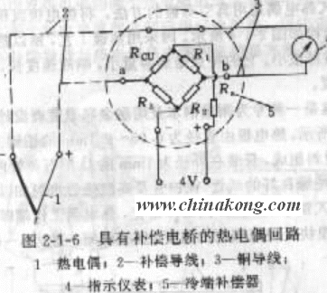 以上幾種補償法常用于熱電偶和動圈顯示儀表配套的測溫系統(tǒng)中。由于自動電子電位差計和溫度變送器等溫度測量儀表的測量線路中已設(shè)置了冷端補償電路因此,熱電偶與它們配套使用時不用再考慮補償方法,但補償導(dǎo)線仍舊需要。