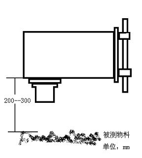 將傳感器安裝于需要測(cè)定物料含水量的部位傳感器與被測(cè)物料面基本垂直并保持間距為250mm左右(見圖)。