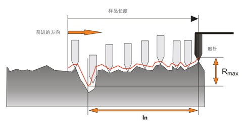 通過測針的自動滑行將粗糙度曲線描繪下來并進行計算既可獲得這條粗糙度曲線的算術平均值(Ra)也可同時獲得深度值(Rmax)