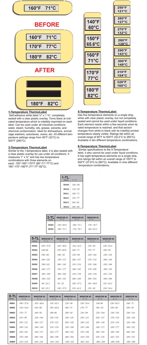 DeltaTrak提供滿足你各種需要的標(biāo)簽:WarmMark溫度標(biāo)簽、高溫?zé)針?biāo)簽和TempDot時間溫度指示標(biāo)簽顯示溫度變 化超過預(yù)設(shè)的時間。FreezeCheck和ColdMark溫度標(biāo)簽用于顯示運輸溫度低于0℃。商業(yè)洗碗機(jī)使用的TempDot高溫?zé)針?biāo)簽可顯示最終沖 洗水溫是否達(dá)到71℃(HACCP體系所要求的溫度)。 高溫ThermoLabel標(biāo)簽,型號50101-50809,,準(zhǔn)確價廉,,一次標(biāo)簽提供溫度變化的永久記錄。有一、三、五、八步溫度變化,,可從32℃測至260℃。