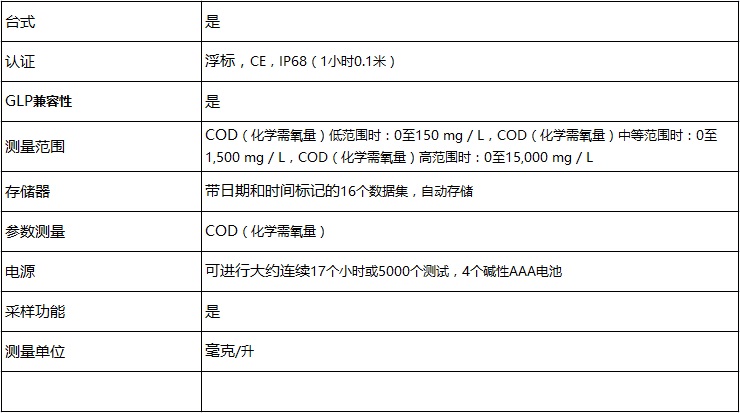 特點 910比色計是一款堅固耐用的防水型單參數(shù)測量儀器,,用于測量COD(化學(xué)需氧量)。